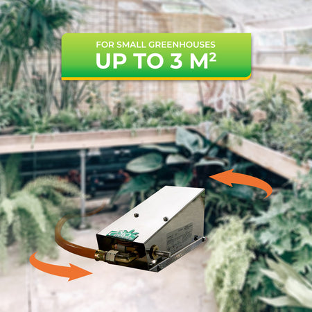 The Bio Green greenhouse heater Frostbuster is your ultimate choice for ensuring your plants' well-being. It harnesses the power of a small, thermally secured gas flame, providing the essential elements for robust plant growth: warmth and CO². Worried about safety? Rest easy knowing that our device comes equipped with a thermal fuse, guaranteeing maximum safety during operation and preventing any unwanted gas leaks.